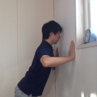 ・壁に両手をついて腕を伸ばした状態で保ちます。